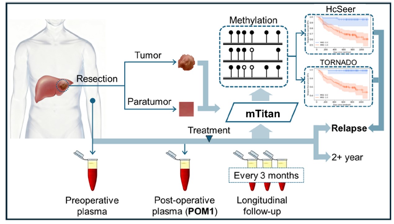 肝细胞癌(HCC)是全球最常见的原发性肝癌类型之一,即使接受根治性切除治疗,仍有超过一半患者在五年内复发,严重影响患者预后。对患者进行精准术前风险分层及术后微小残留病灶(MRD)监控是目前临床上的一大痛点。必赢242net官网联合复旦大学附属中山医院,采用自主研发的靶向甲基化深度测序技术,利用血浆游离DNA(cfDNA)甲基化特征对HCC患者进行术前风险分层以及术后微小残留病灶(MRD)检测,进而为个体化干预提供全新的分子监测手段。