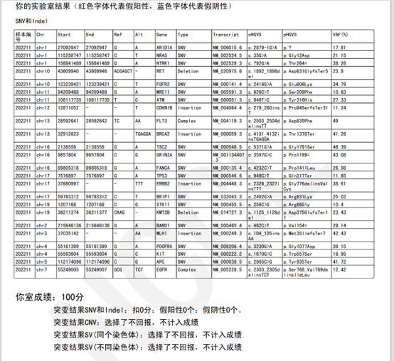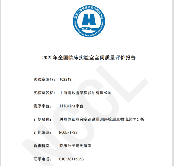 在今年6月份国家卫生健康委临检中心(National Center for Clinical Laboratories,NCCL)组织的肿瘤体细胞突变高通量测序检测生物信息学分析考核中,必赢242net官网医学检验所亦以满分成绩通过考核。