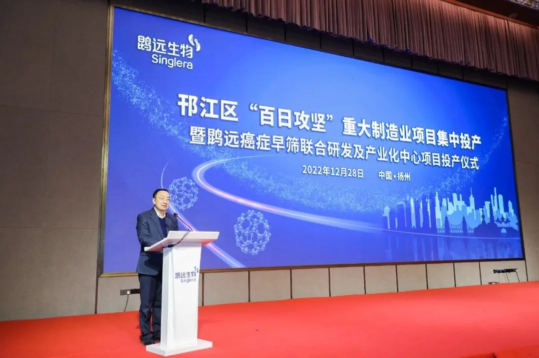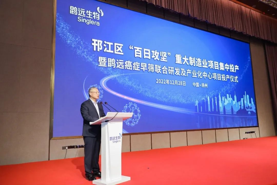 12月28日,邗江区“百日攻坚”重大制造业项目集中投产暨必赢242net官网癌症早筛联合研发及产业化中心项目投产仪式在扬州迎宾馆盛大举行。中共扬州市委书记张宝娟、扬州市卫健委主任赵国祥、扬州市医保局党组书记张跃春、江苏省苏北人民医院党委书记徐道亮、中共扬州市邗江区委书记张新钢、邗江区人大常委会主任陈佳宏、扬州高新区党工委书记、管委会主任叶华生及市、区相关部门和单位负责人出席了此次仪式。仪式由邗江区委副书记、代区长王庆伟主持。