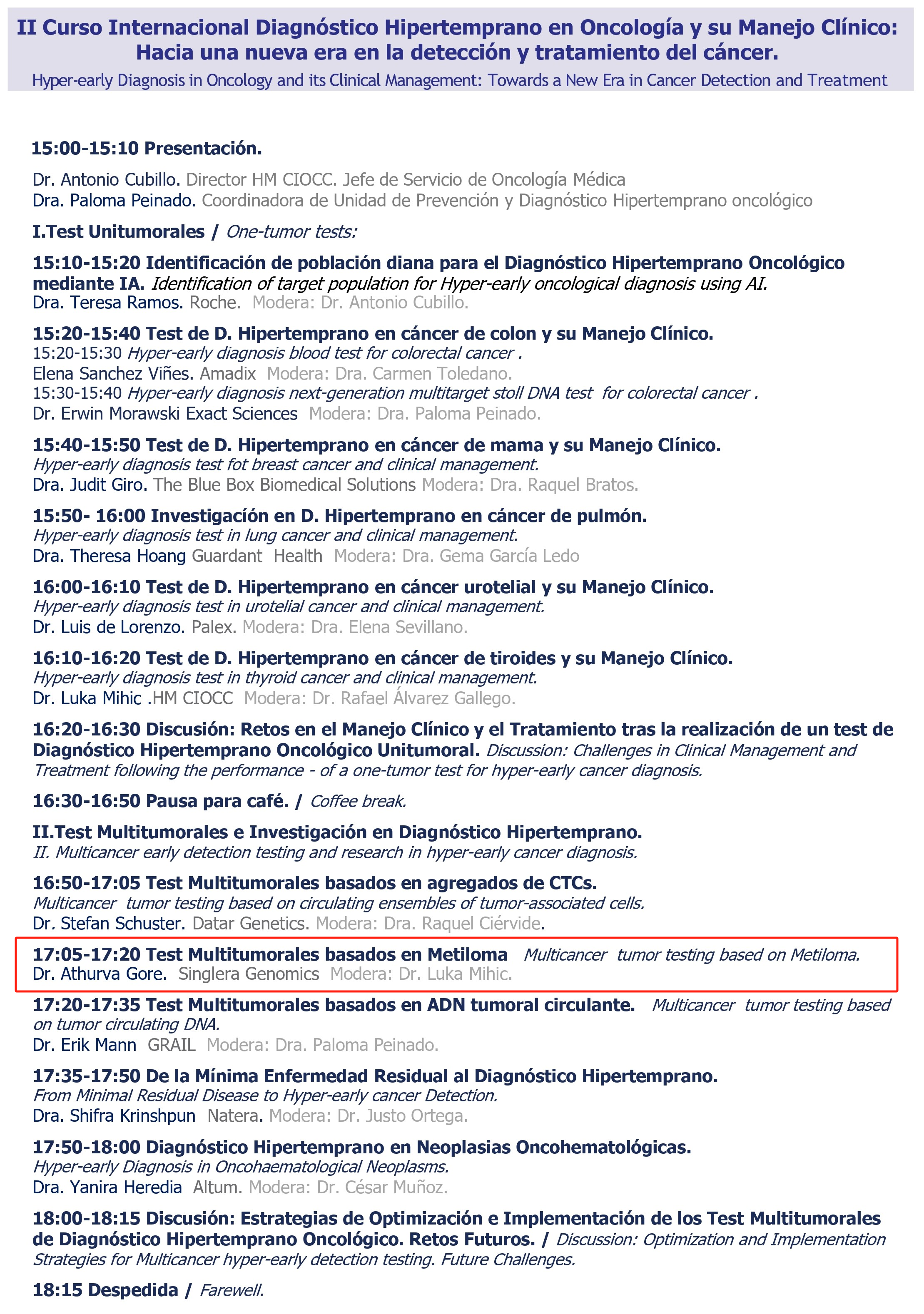 近日,HM 医院(HM Hospitales)年度肿瘤超早期诊断及临床管理会议在西班牙马德里召开。HM是西班牙顶尖的医院集团,本次大会吸引了默沙东、罗氏、Exact Sciences、Grail、Natera等知名企业参加。必赢242net官网应邀在大会上专题报告了PDACatch试验的临床前研究结果。PDACatch是一种新型的基于DNA甲基化、用于检测高风险人群中胰腺癌的液体活检技术,于2023年5月获得美国食品药品监督管理局(FDA)的突破性医疗器械认证。